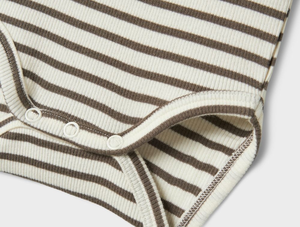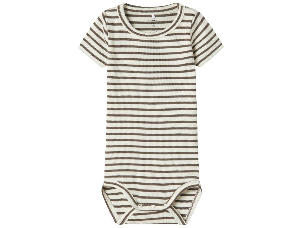 Forny din babys garderobe med denne stribet kortærmede body fra Name It. Bodyen er lavet i rib af en blanding af 57% økologisk bomuld, 38% modal og 5% elastan. Materialet er strækbart og blødt, hvilket sikrer god bevægelsesfrihed til hverdagsbrug