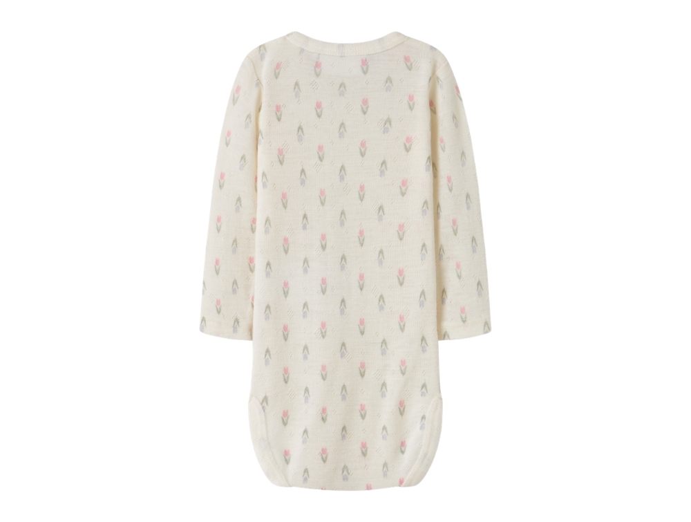 Mere information om Name it body coconut milk med blomsterprint i merinould