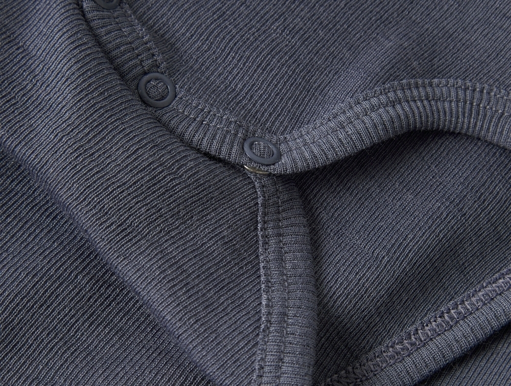 Name It body i folkstone gray blågrå nuance i merinould og silke med ribmønster set forfraName It body i folkstone gray blågrå nuance i merinould og silke med ribmønster detalje af trykknapperName It body i folkstone gray blågrå nuance i merinould og silke med ribmønster set bagfra