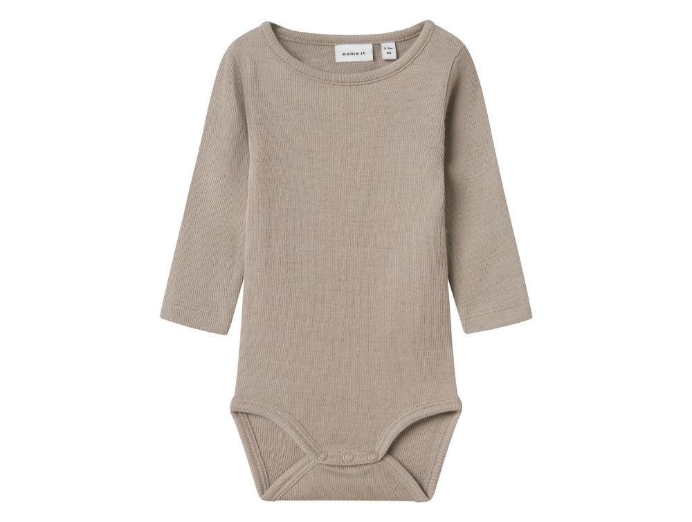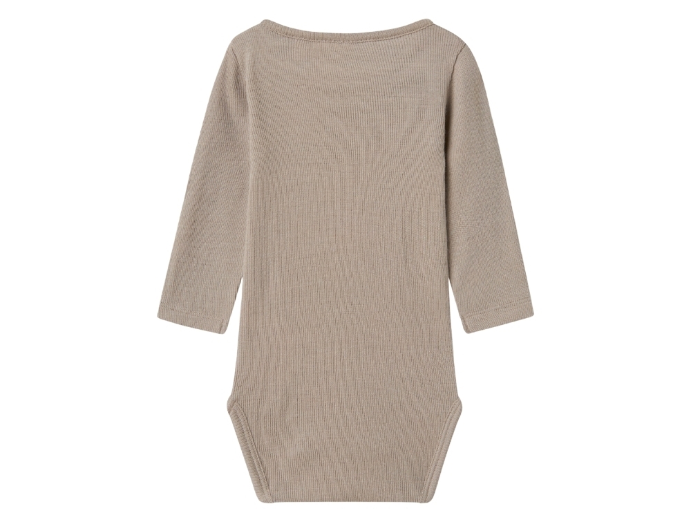 Name It body i grå brun nuance med ribmønster i merinould og silke
