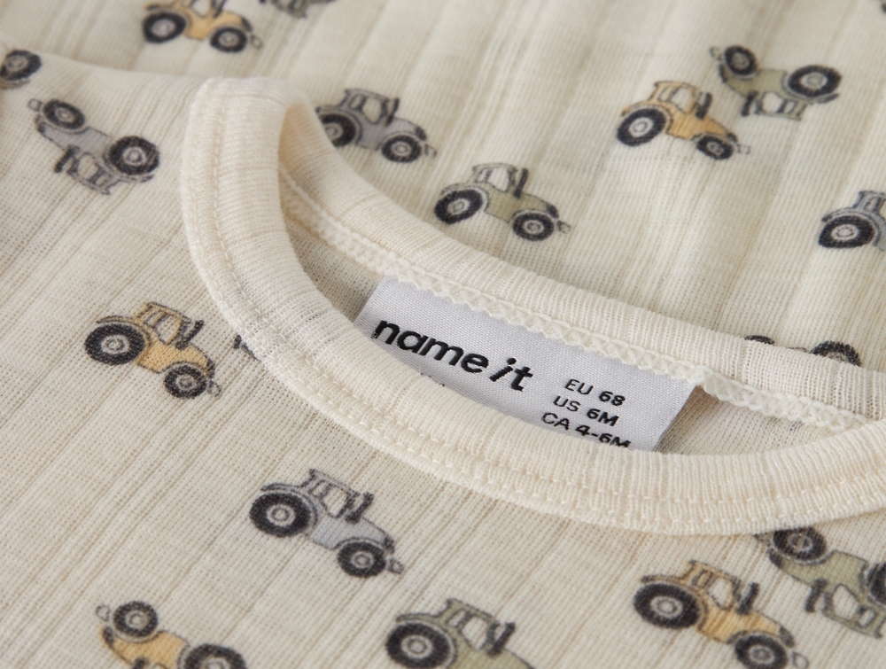 Name it body i merinould råhvid med traktorer set forfraName it body i merinould råhvid med traktorer closeup ved halsName it body i merinould råhvid med traktorer set bagfra