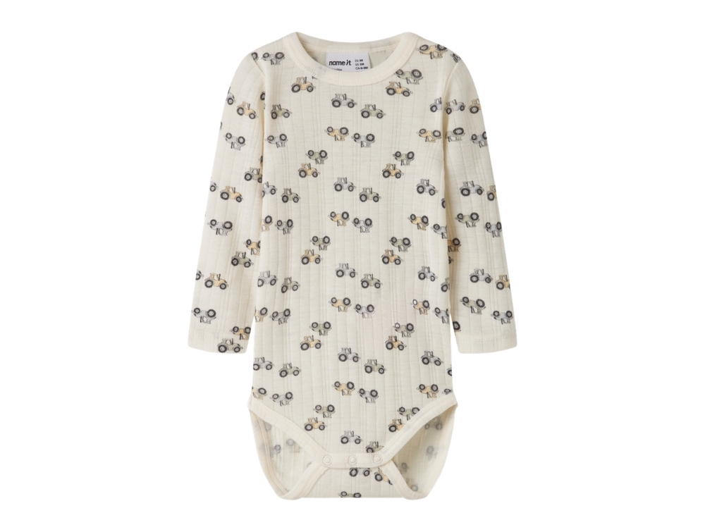 Body i råhvid nuance (coconut milk) fra Name it med traktorprint og lange ærmer.