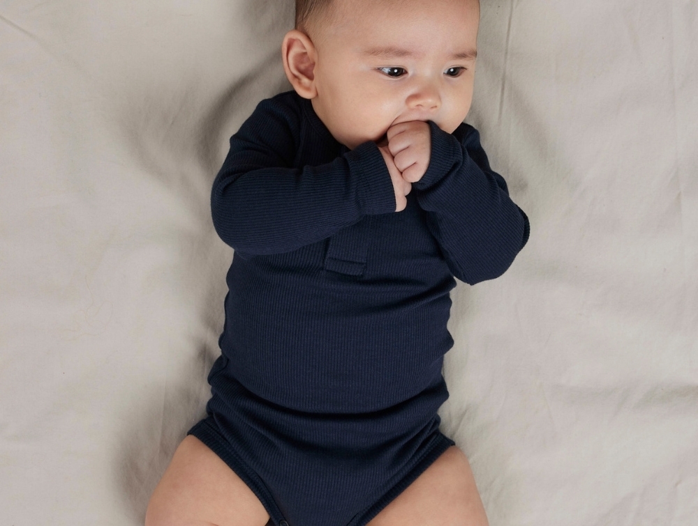 Fremstillet i økologisk bomuld, modal og elastan for en fleksibel og åndbar pasform. En tidløs basisstyle, der passer perfekt i babyens garderobe.