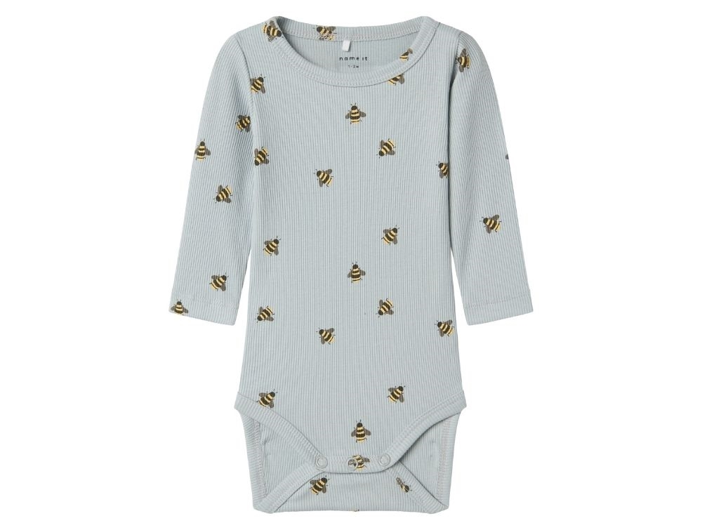 Body i støvet lyseblå nuance fra Name It med sødt print af små bier.