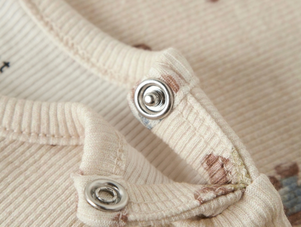 Modellen har rund hals og lange ærmer samt trykknapper ved skulderen og i bunden, så den er nem at tage af og på. Det dekorative print med små bamser giver et sødt og nedtonet udtryk.