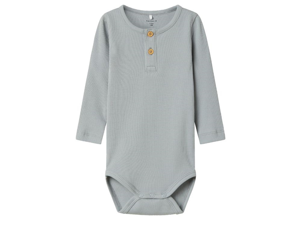 Blød og strækbar langærmet body fra Name It i en smuk støvet blå nuance. Bodyen er fremstillet i en let og behagelig jerseykvalitet, der sikrer god bevægelsesfrihed og komfort til hverdagsbrug.
