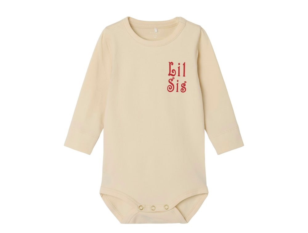 Blød og strækbar body fra Name It med et sødt "lillesøster"-print. Den er lavet af 95% økologisk bomuld og 5% elastan, hvilket giver en behagelig og fleksibel pasform.