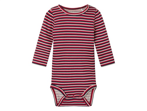 Blød og strækbar body fra Name It med striber. Den er lavet af 95% økologisk bomuld og 5% elastan, hvilket giver en behagelig og fleksibel pasform.