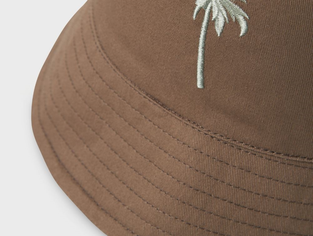 Brun bøllehat med lille palmebroderi fra Name It. Giv dit barns outfit et sjovt og praktisk twist med en stilfuld hat.