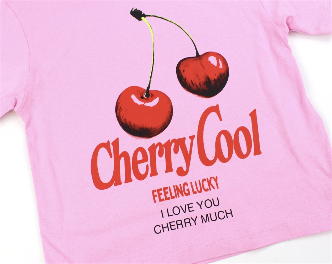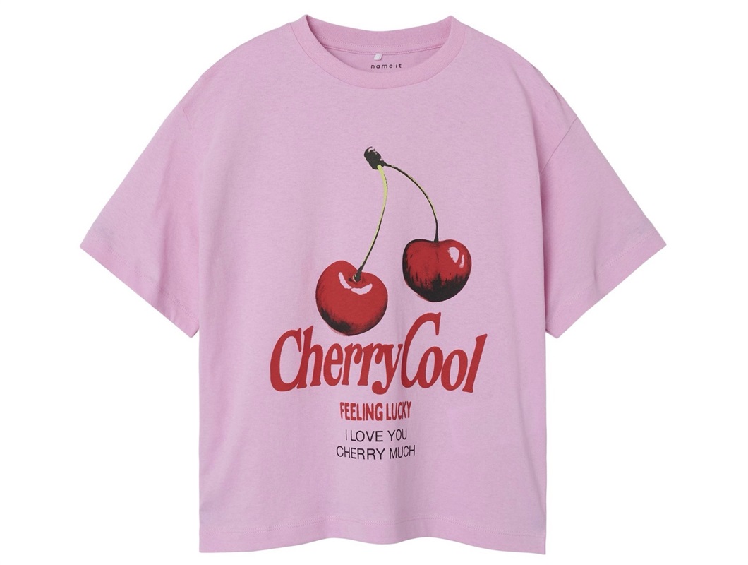 Cool t-shirt i farven bonbon med kirsebærprint fra Name It.