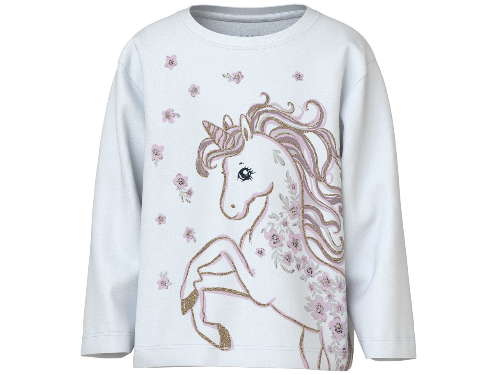 Mere information om Name It bright white/unicorn glitter top