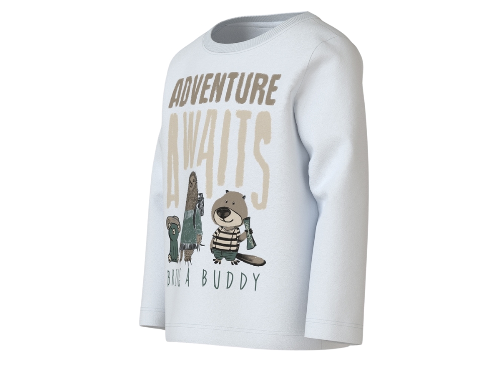 Langærmet top i farven bright white med 'bring a buddy' print tema fra Name It.