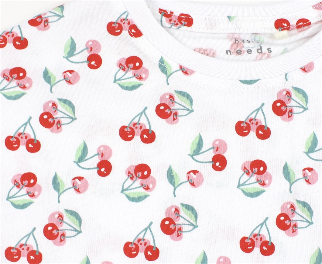 Top/t-shirt i farven bright white med kirsebærprint fra Name It.