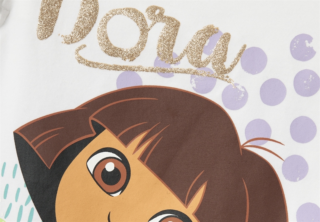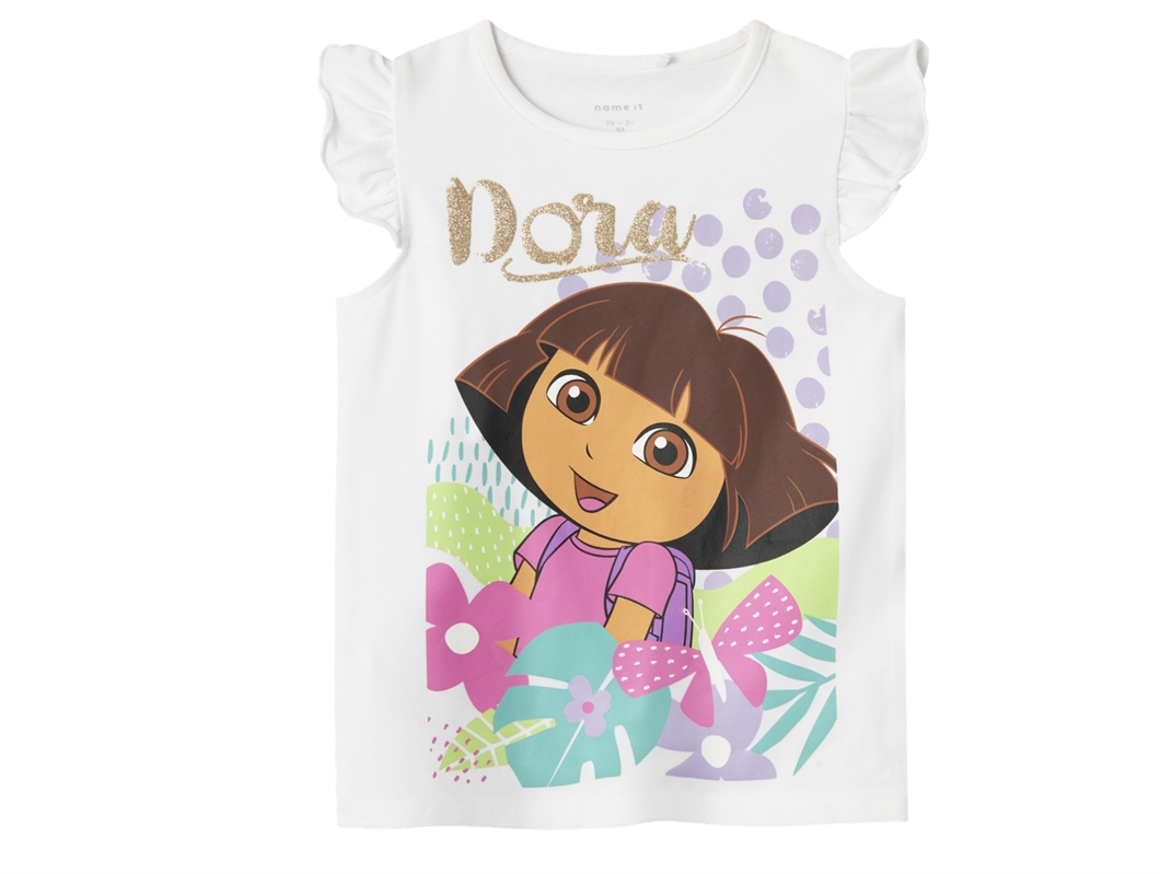 Top i farven bright white med Dora-print og glimmer fra Name It.
