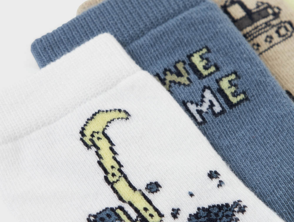 5 par bomuldsstrømper i forskellige farver og med forskellige motiver fra Name It.