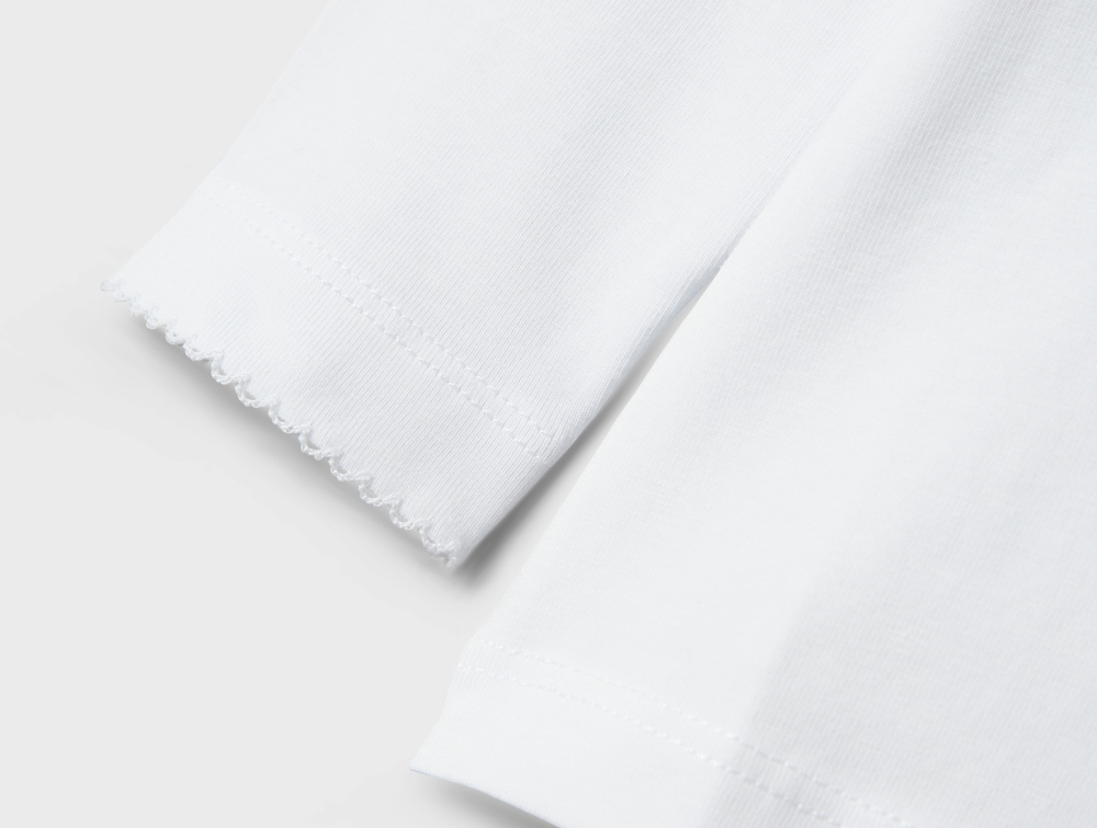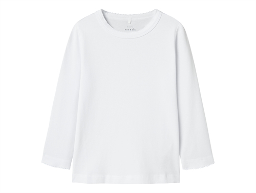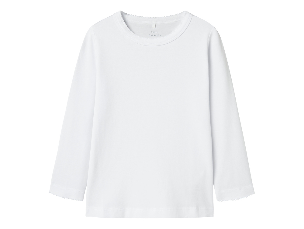 Langærmet top/bluse i farven bright white med diskret blondekant ved hals og ærmeslut fra Name It.