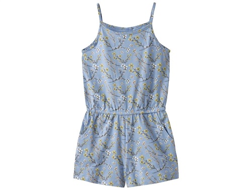 Lyseblå sommerdragt fra Name It i blød jersey med sødt blomsterprint og smalle stropper.