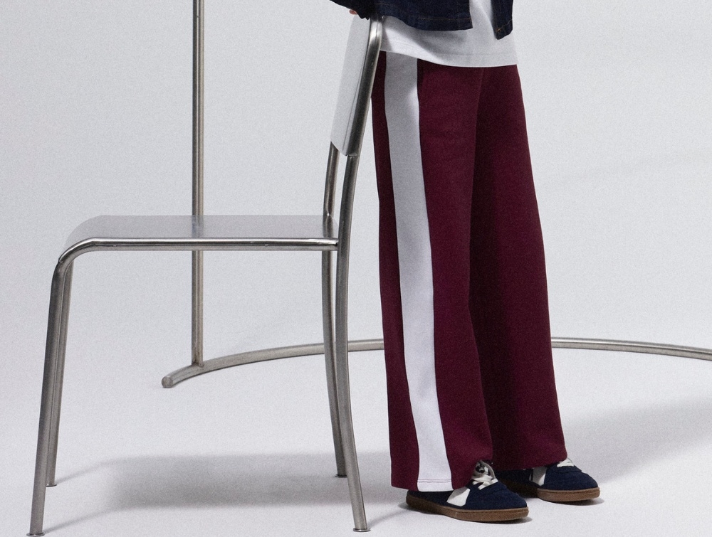 Designet har løstsiddende pasform med brede ben og en justerbar talje. Den brede stribe langs benene giver et sporty udtryk.