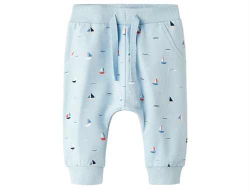 Bukser i lyseblå (celestial blue) med print af sejlbåde fra Name It.