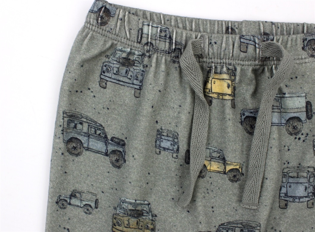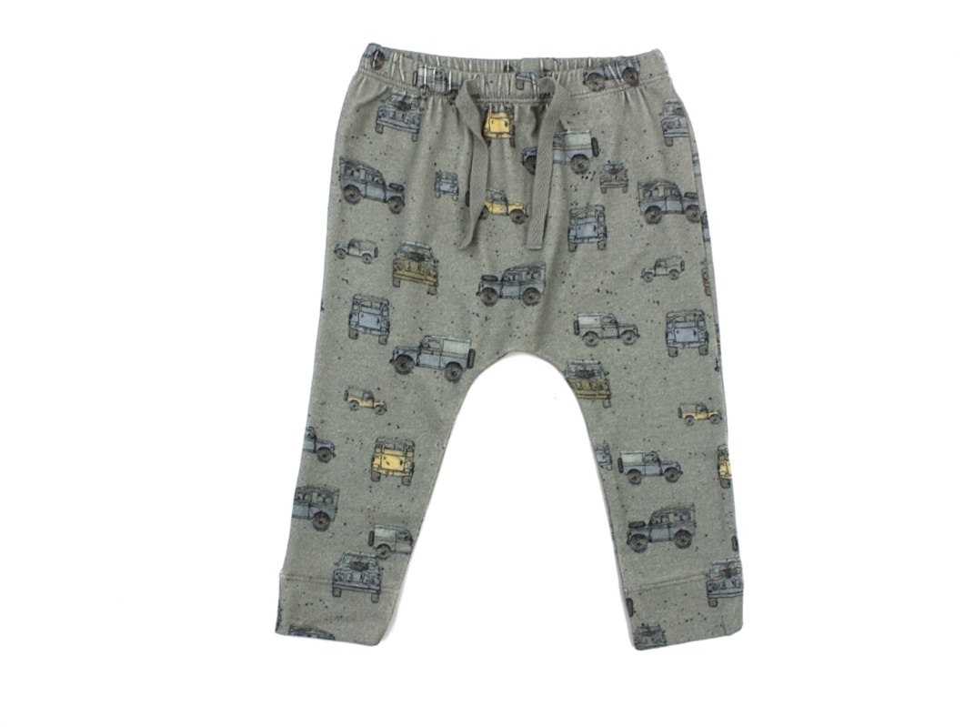 Bløde bukser i farven forest fog med bilprint fra Name It.