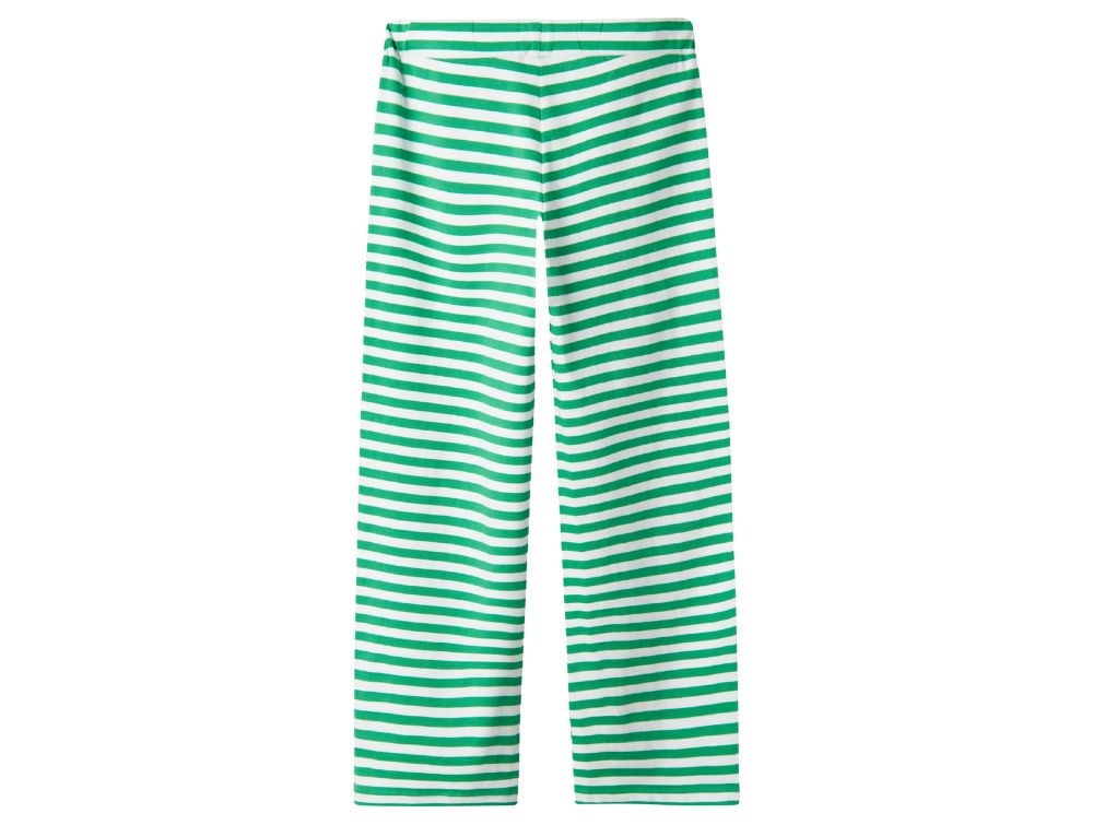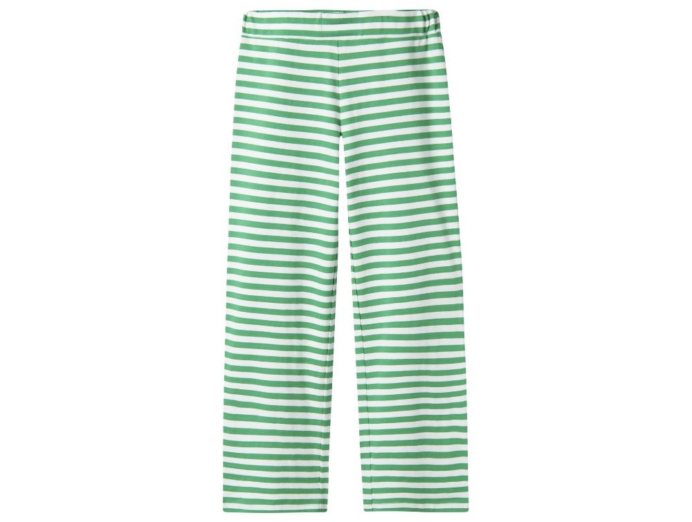 Bløde og behagelige bukser fra Name It i en let jersey-kvalitet med hvide og grønne striber. Det strækbare stof sikrer en behagelig pasform og stor bevægelsesfrihed.