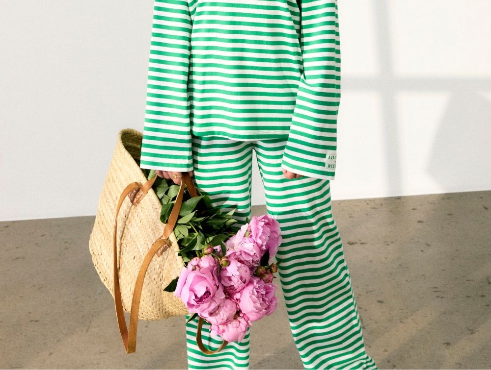 Stribede bukser i hvid og grøn fra Name It.