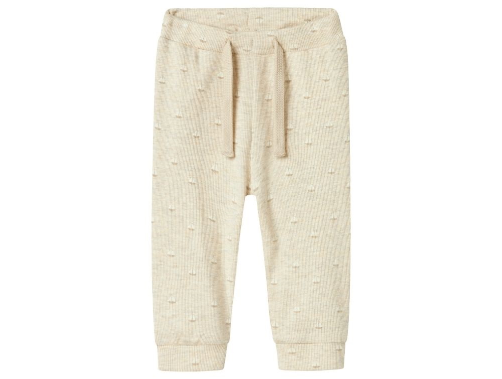 Bløde bukser i beige (peyote melange) fra Name It med print af både over hele stoffet.