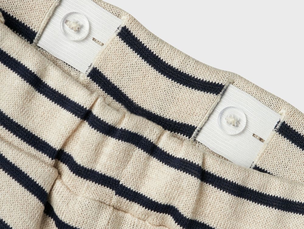 Brede Name It bukser i sommer sand og navy blazer striber i viskose.
