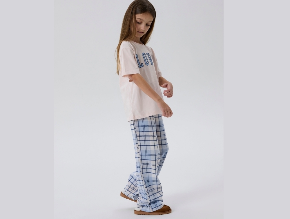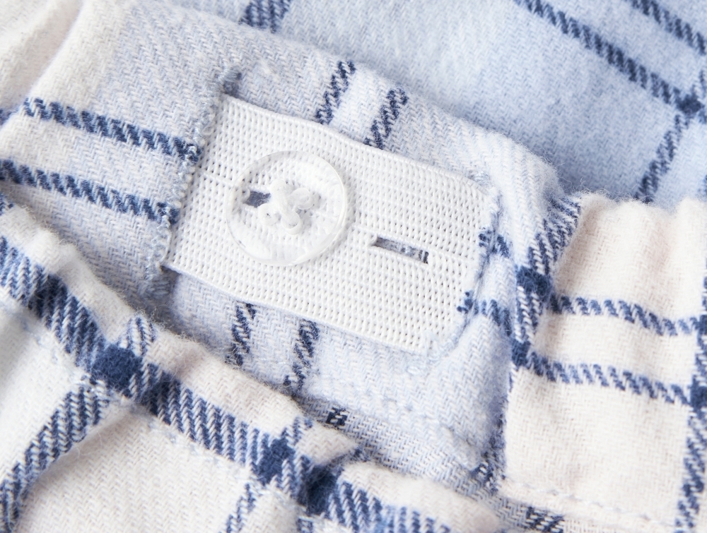 Bukserne har en almindelig pasform med elastik i taljen, justerbar knaphulselastik og fast bindesnor. Fremstillet i blød, vævet bomuld med klassisk ternet mønster, der giver et hyggeligt udtryk.