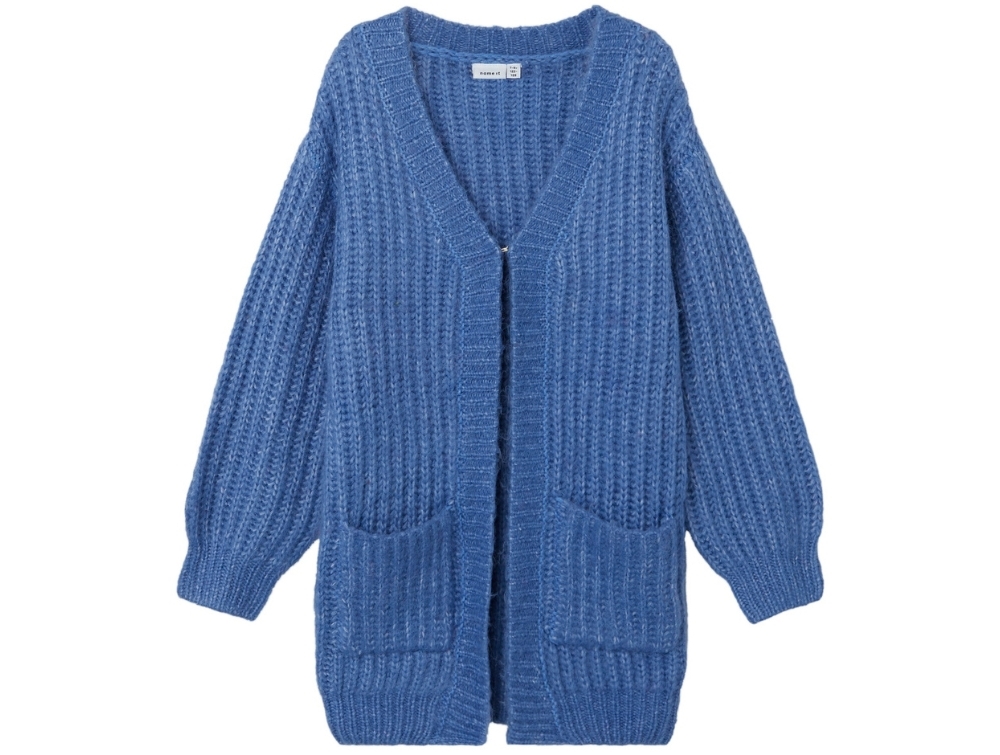 Lang cardigan med lommer i farven ebb and flow fra Name It.