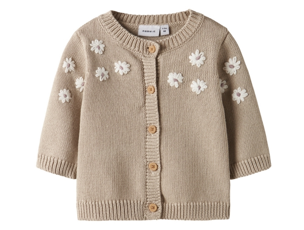 Name It cardigan i beige med blomsterbroderi