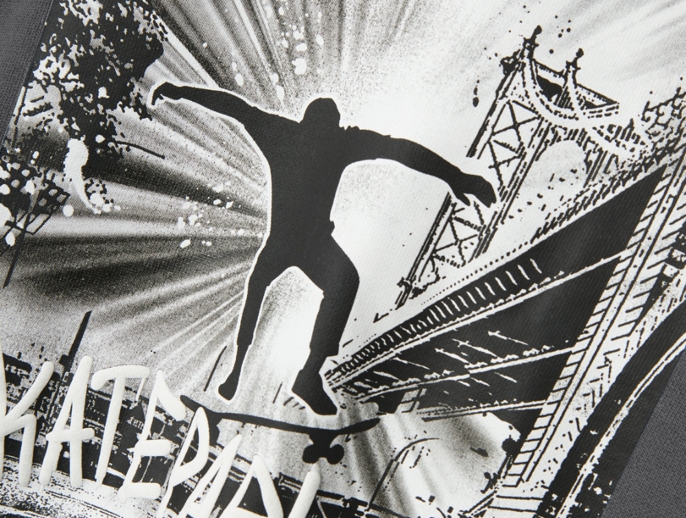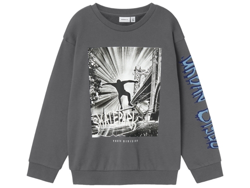 Sweatshirt i farven castlerock med cool skater- og tekst-print fra Name It.