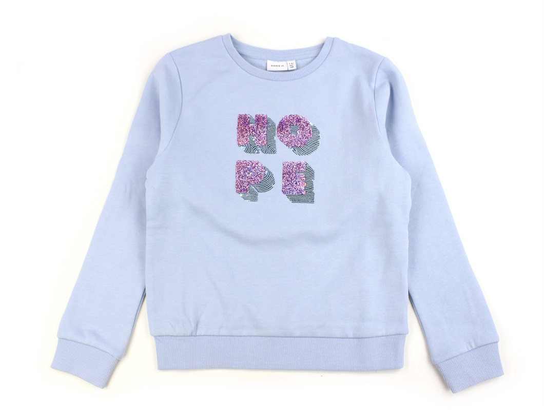 Sweatshirt i farven chambray blue med paillet-tekst fra Name It.