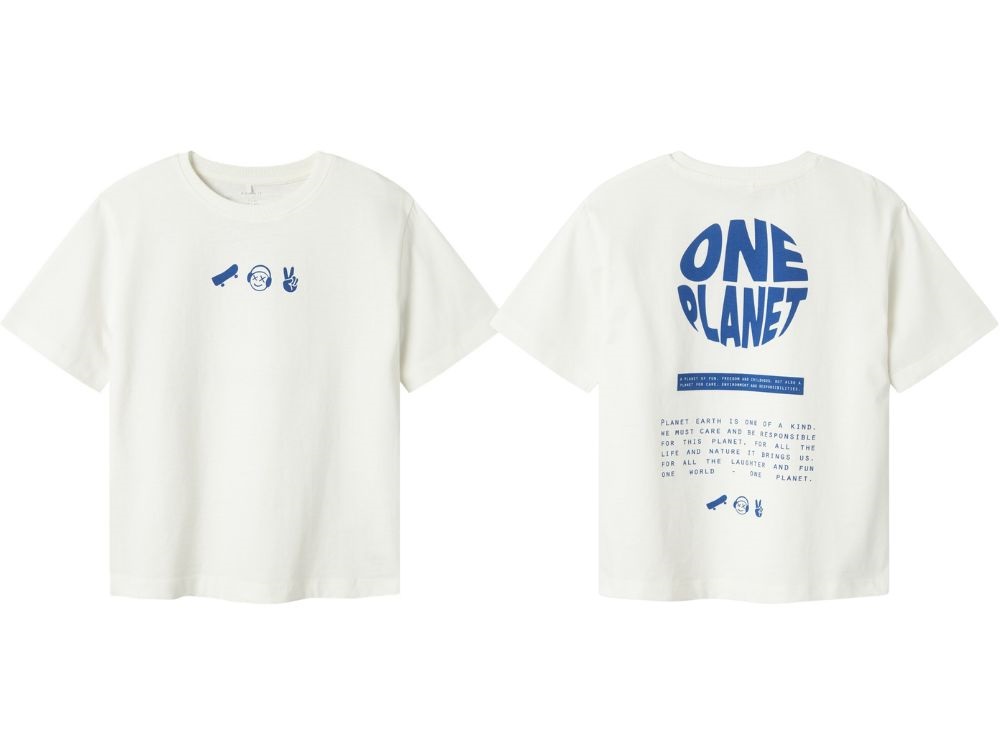 T-shirt i farven cloud dancer med print på front og ryg i farven limoges fra Name It.