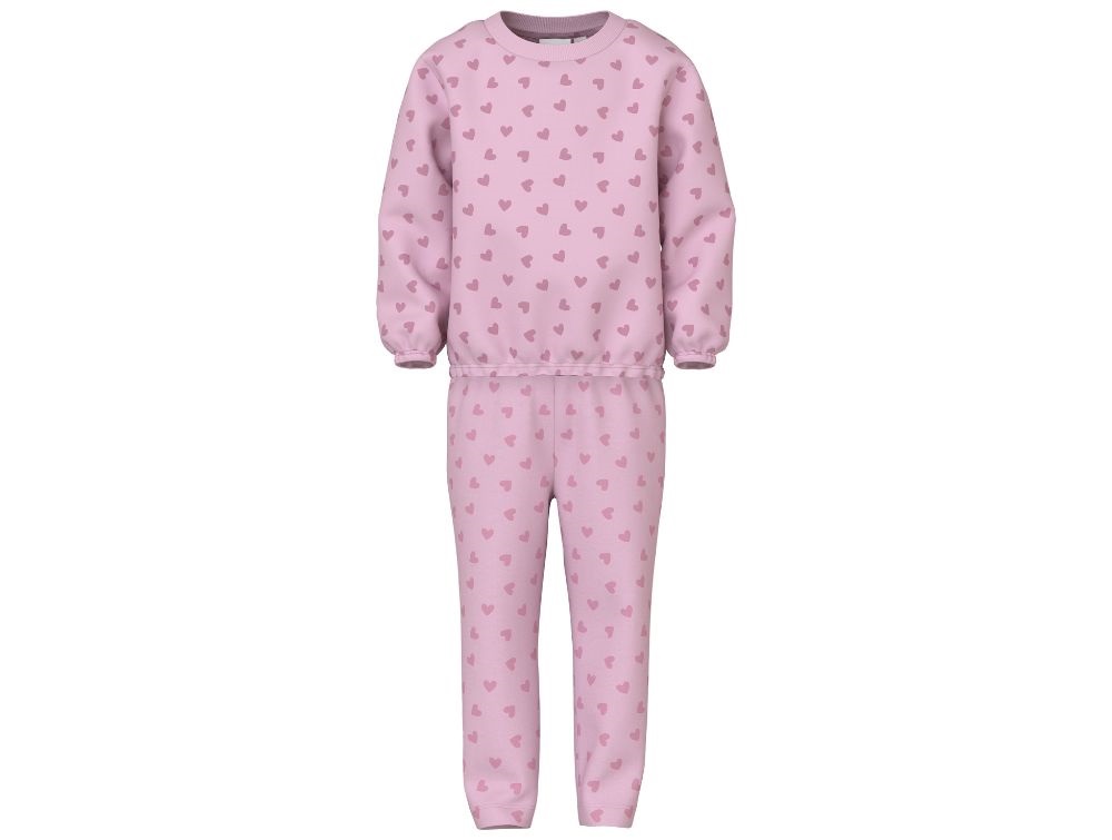 Sweatsæt i farven corsage med bluse og bukser med hjerteprint fra Name It.