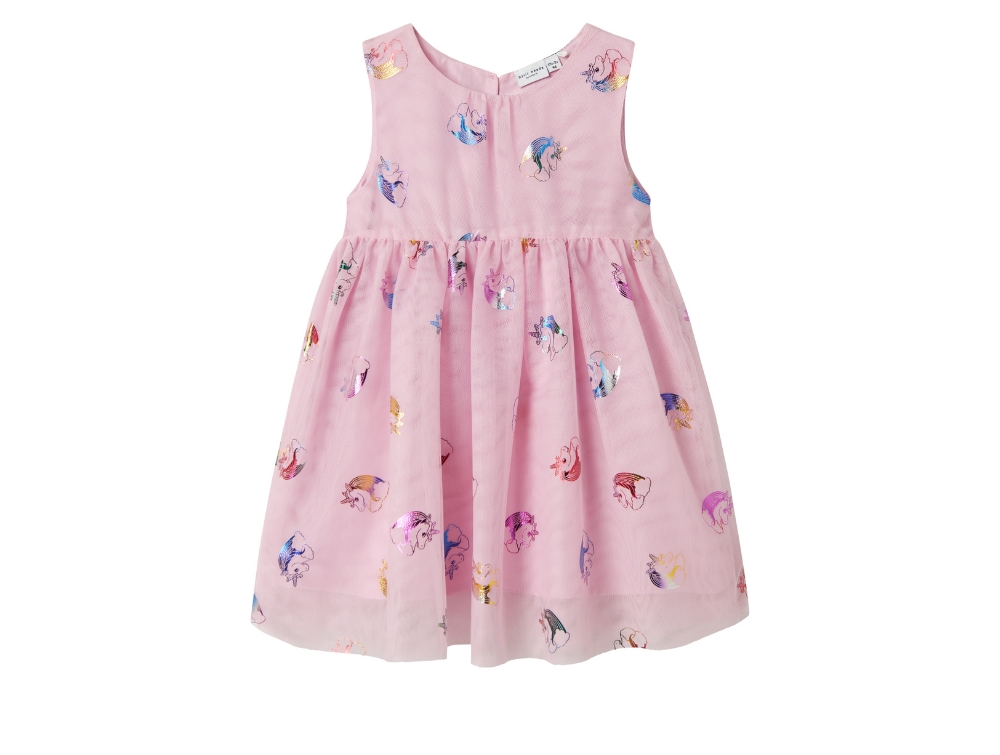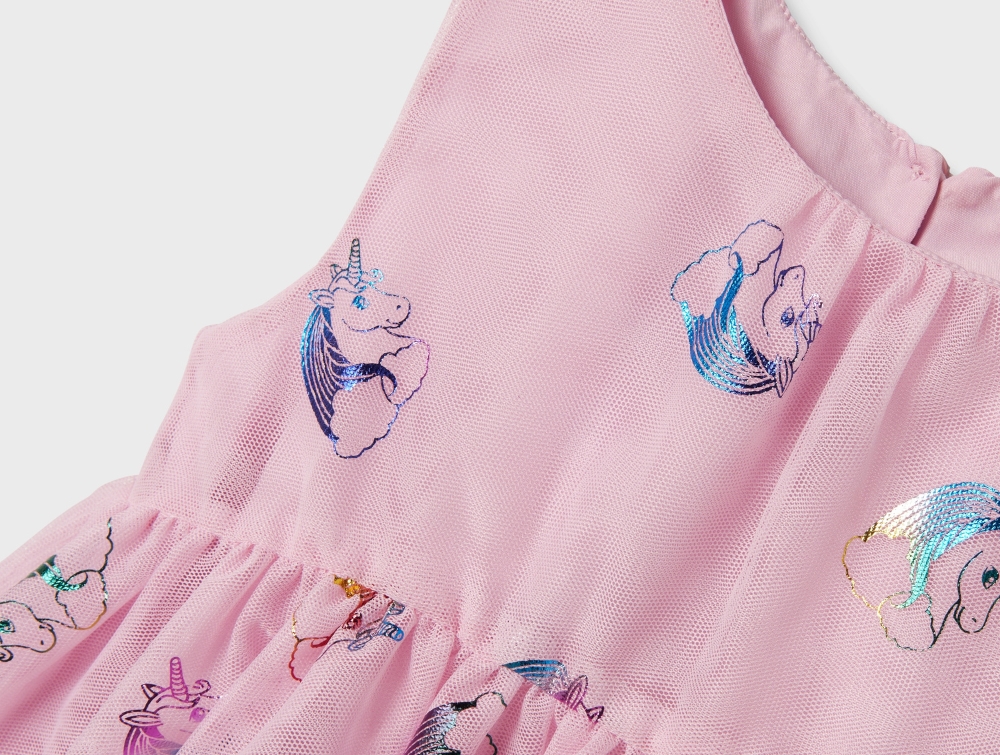 Kjole i farven corsage med metallic enhjørningprint fra Name It.