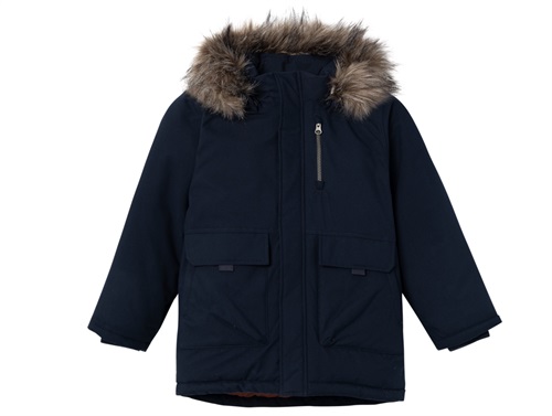 Parka vinterjakke i farven dark sapphire med aftagelig hætte med trykknapper fra Name It.