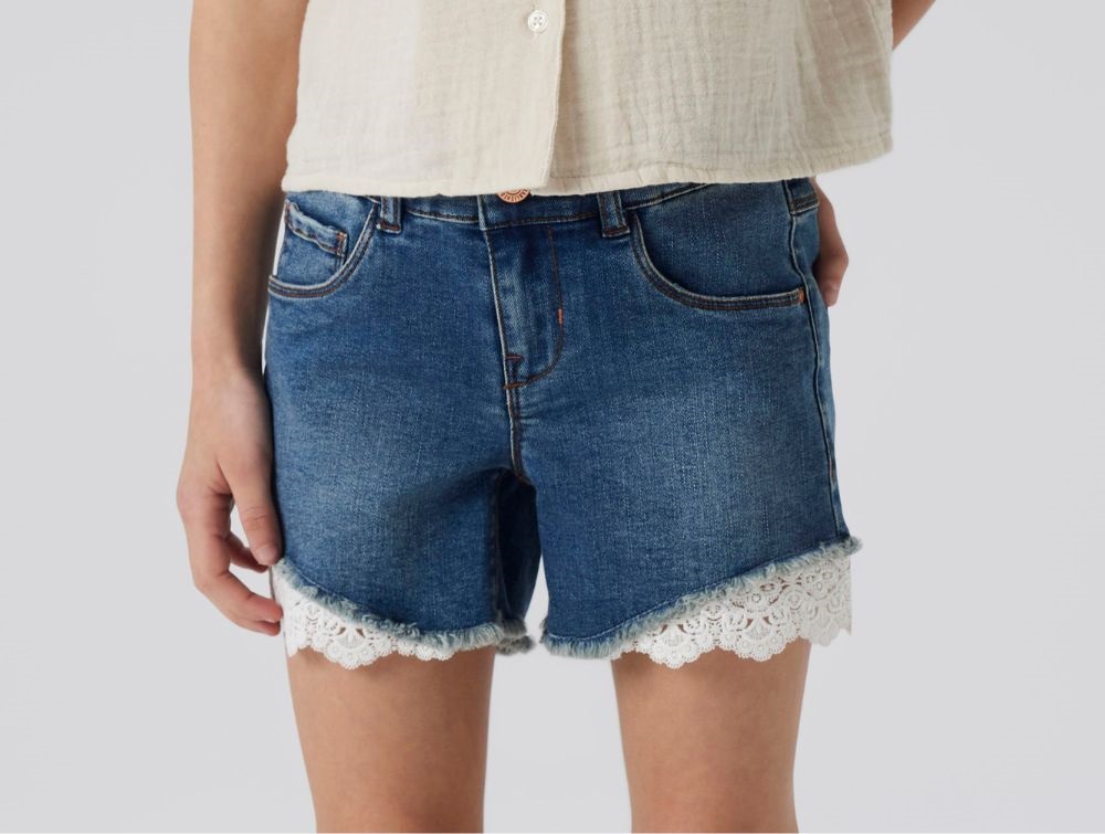 Denimshorts i farven dark blue denim med blondekant fra Name It.