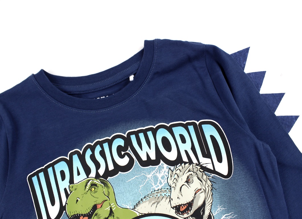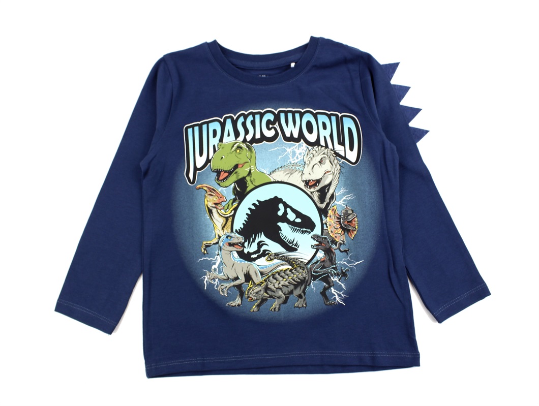 Langærmet top/bluse i farven dark denim med Jurassic World print fra Name It.