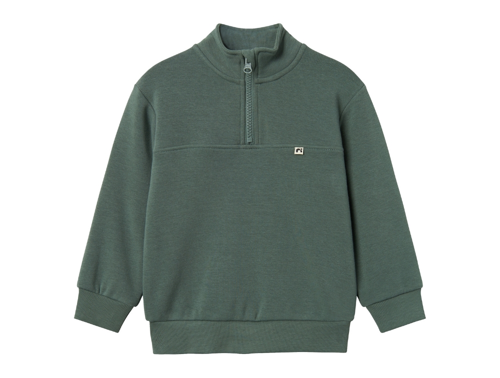 Sweatbluse pullover med lynlås i farven dark forest fra Name It.