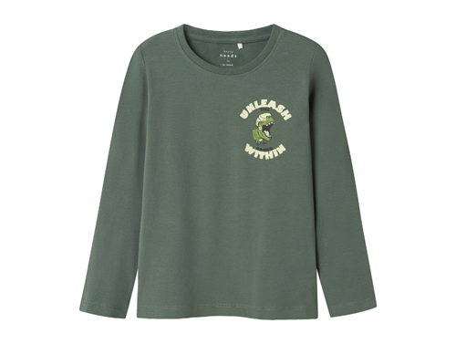 Langærmet top/bluse i farven dark forest med print fra Name It.