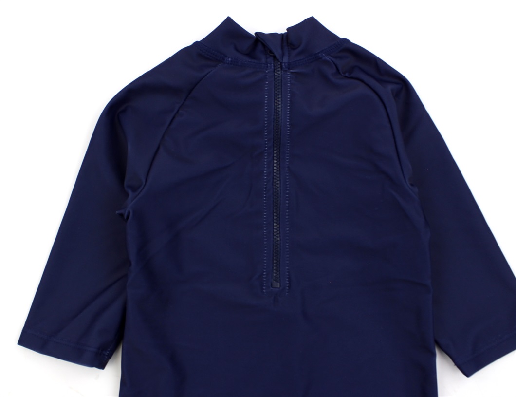 Badedragten lukkes med lynlås og har UV beskyttelse fra solen.