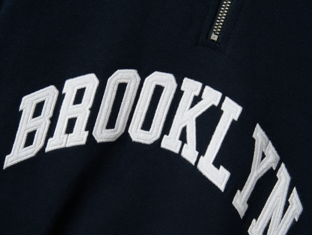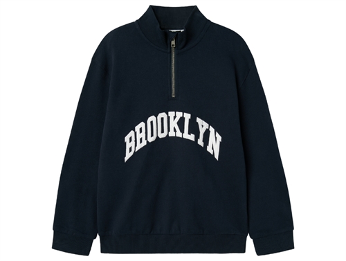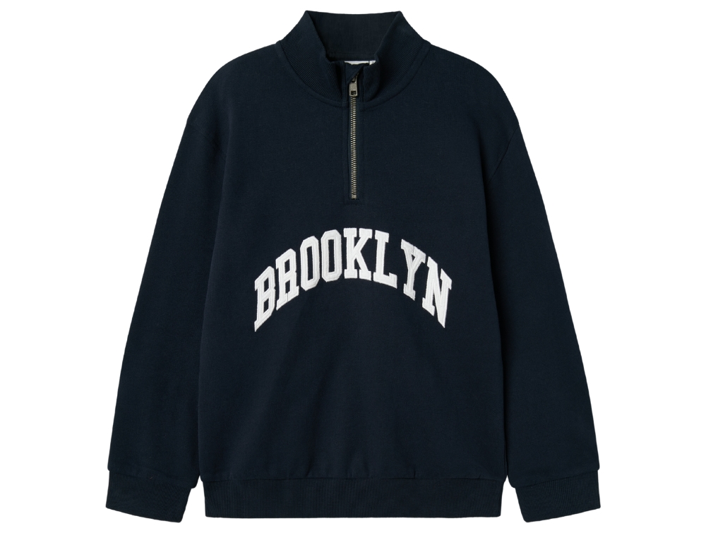 Sweatshirt i farven dark sapphire med halv lynlås og Brooklyn-tekst fra Name It.
