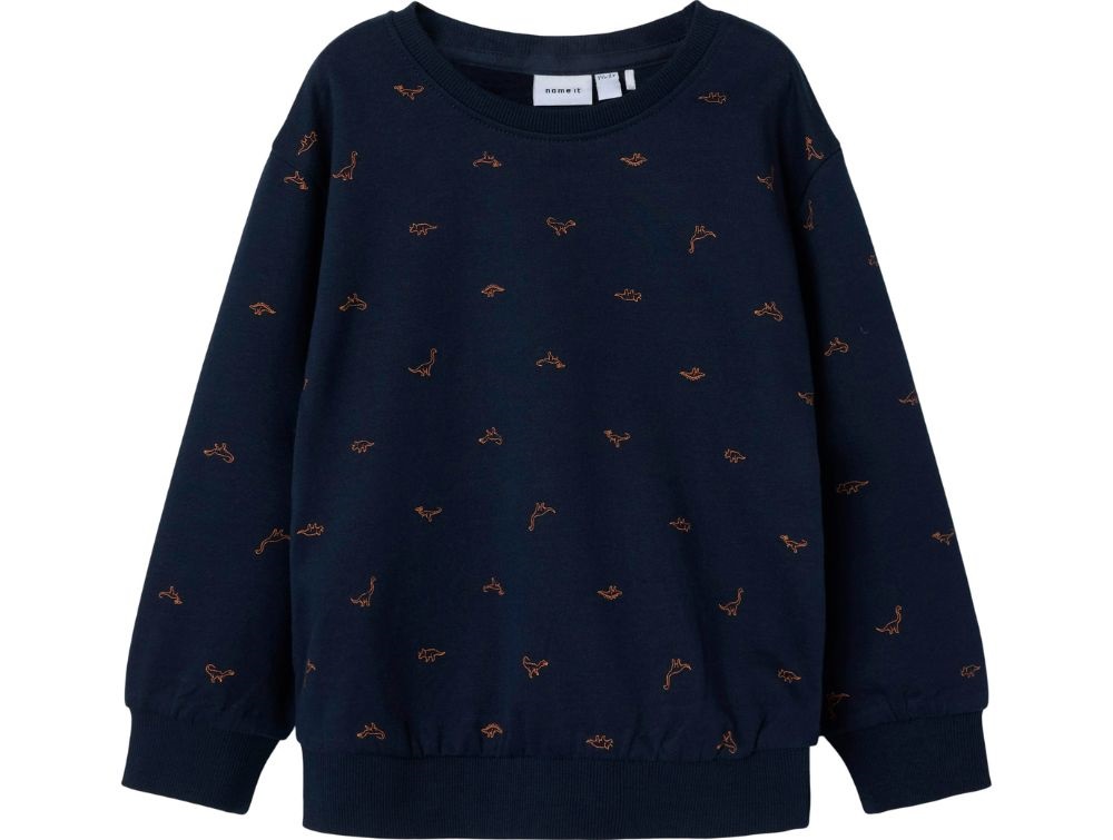 Sweatbluse i farven dark sapphire med dinoprint fra Name It.