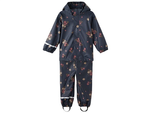 Regntøjssæt i farven dark sapphire med blomsterprint fra Name It.