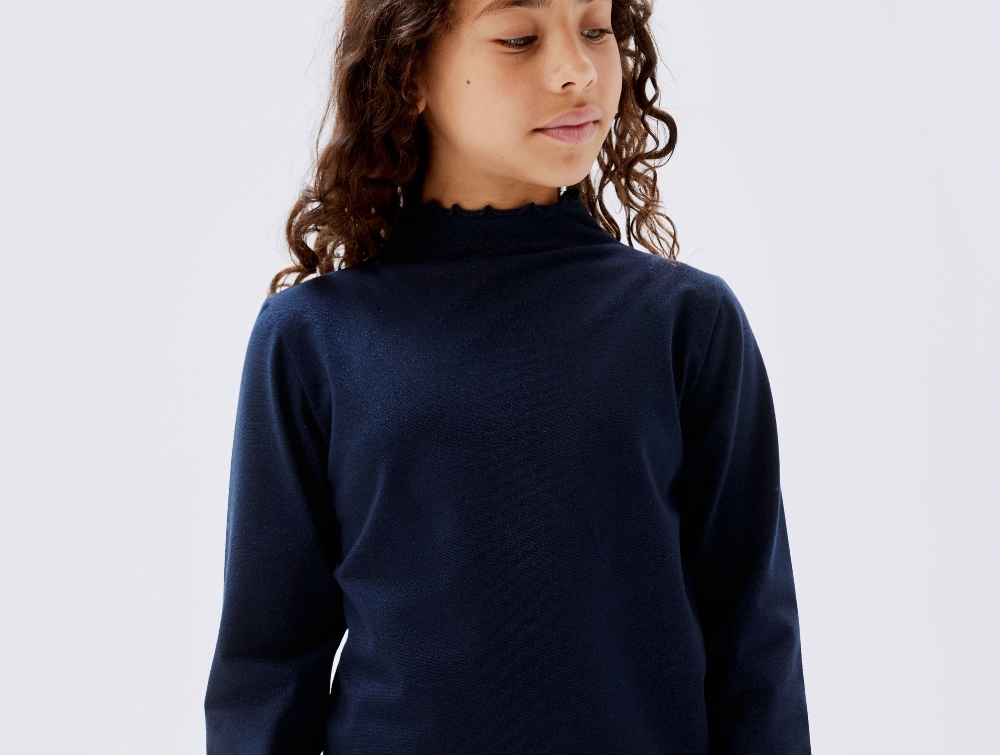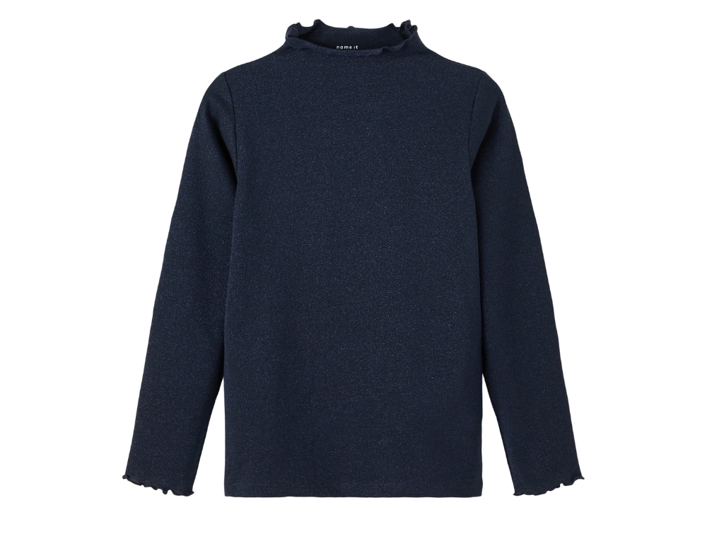 Langærmet top i farven dark sapphire med glitter fra Name It.