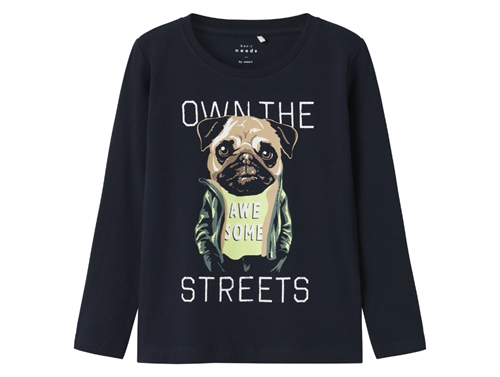 Langærmet top/bluse i farven dark sapphire med hundeprint fra Name It.
