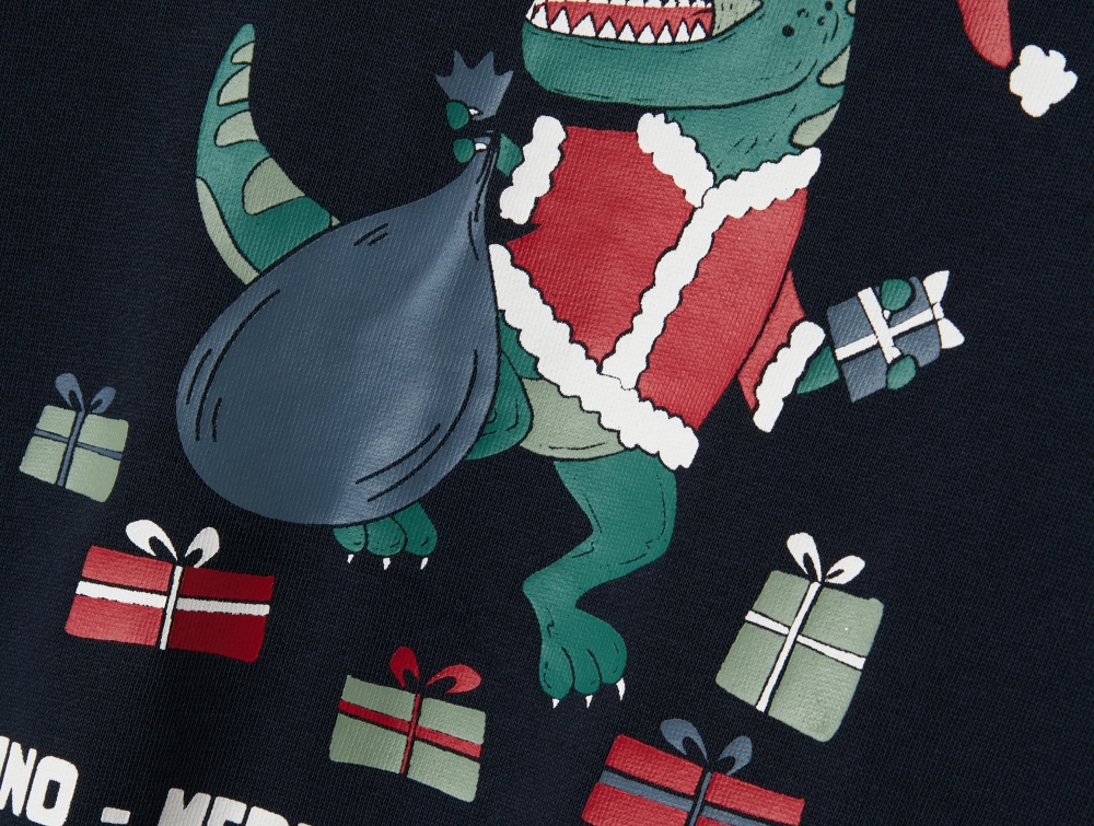 Julesweatbluse i farven dark sapphire med dinoprint fra Name It.