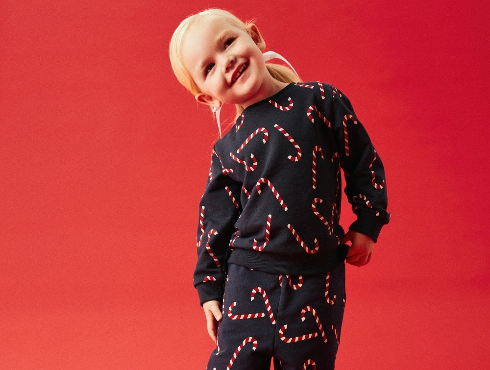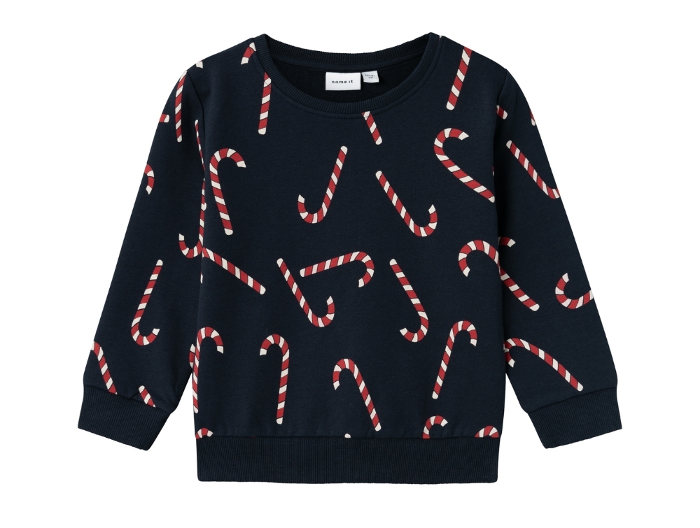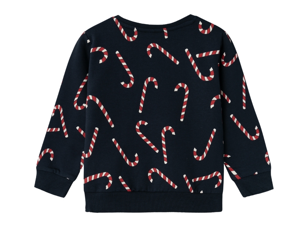 Sweatbluse i farven dark sapphire med julestok-print fra Name It.