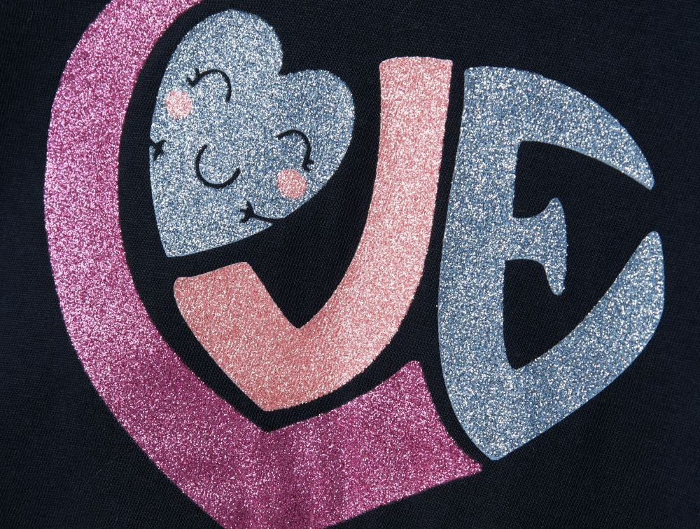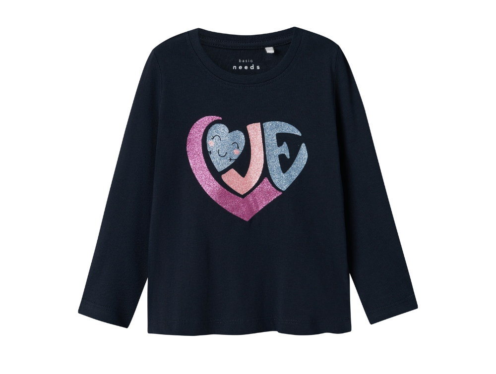 Langærmet top i farven dark sapphire med glimmer-love print fra Name It.